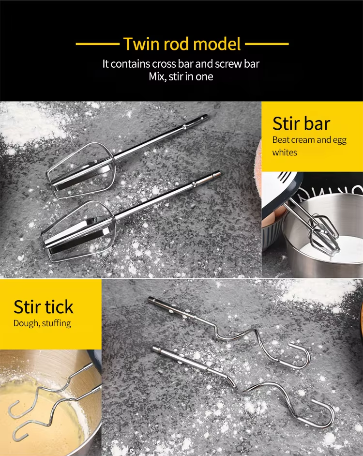 7 Speed Control Electric Egg Beater Kneading Stainless High Capacity